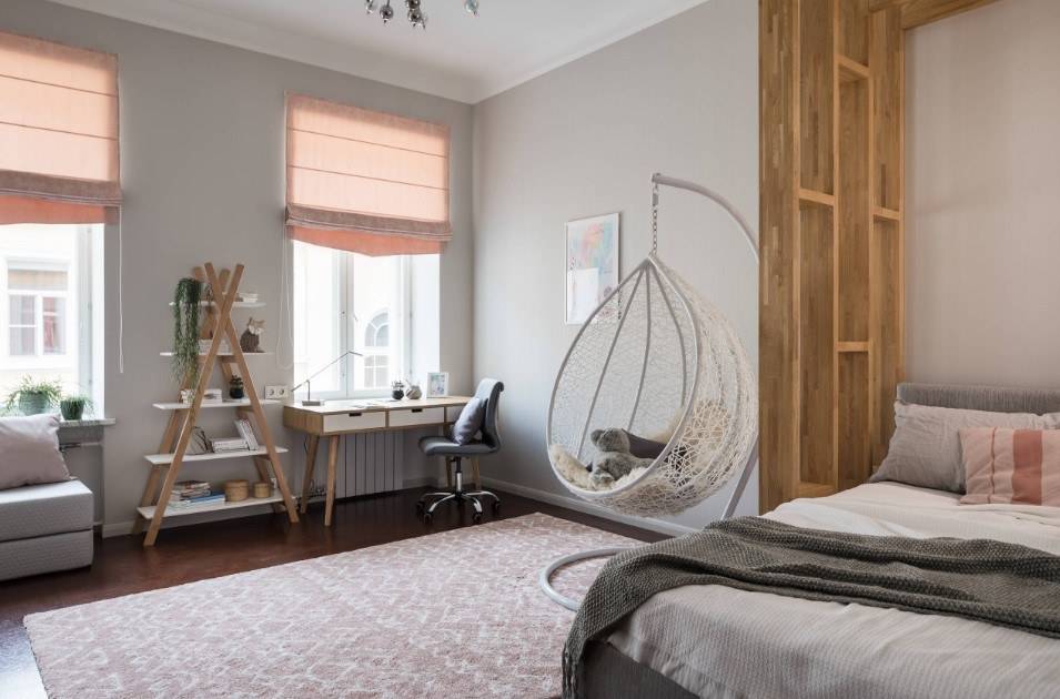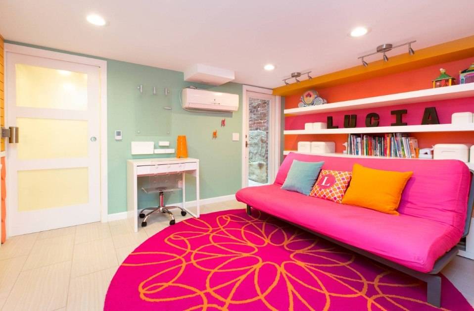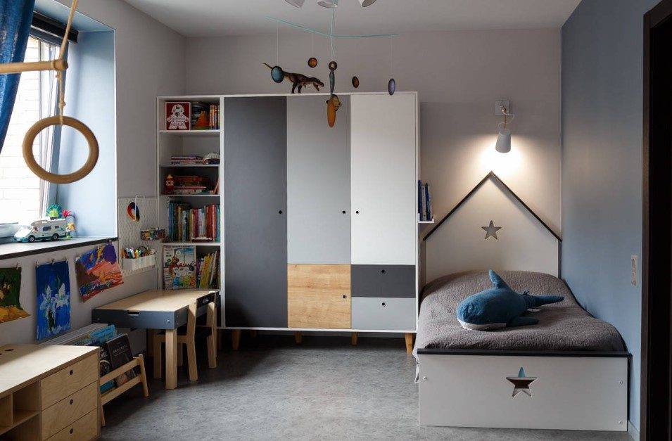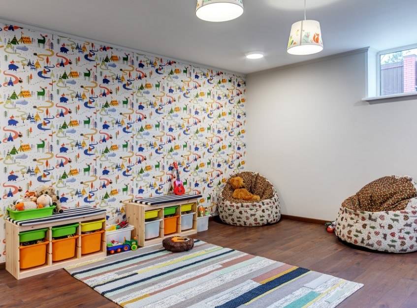 Главное в таком помещении – современная, удобная, надежная, практичная мебель. Стулья и стул выбирают без острых углов. Если сочетать все требования, комната будет стильной. Рекомендуемые цвета – мятный, ванильный, карамельный, теплый серый.