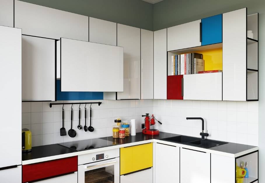 Фон в этих интерьерах обязательно должен быть одного из нейтральных оттенков – белого, черного или серого. А остальные цвета должны быть одинаковой насыщенности (одинакового уровня яркости и насыщенности). Тогда получается довольно сдержанный, но в то же время живой и жизнерадостный интерьер.