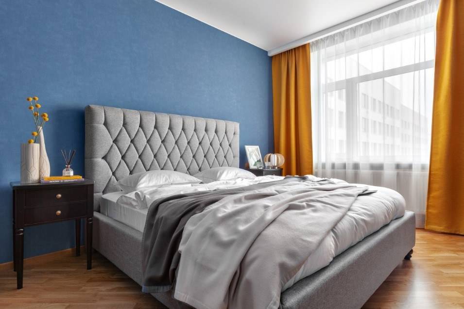 Глубокий синий в интерьере спальни
