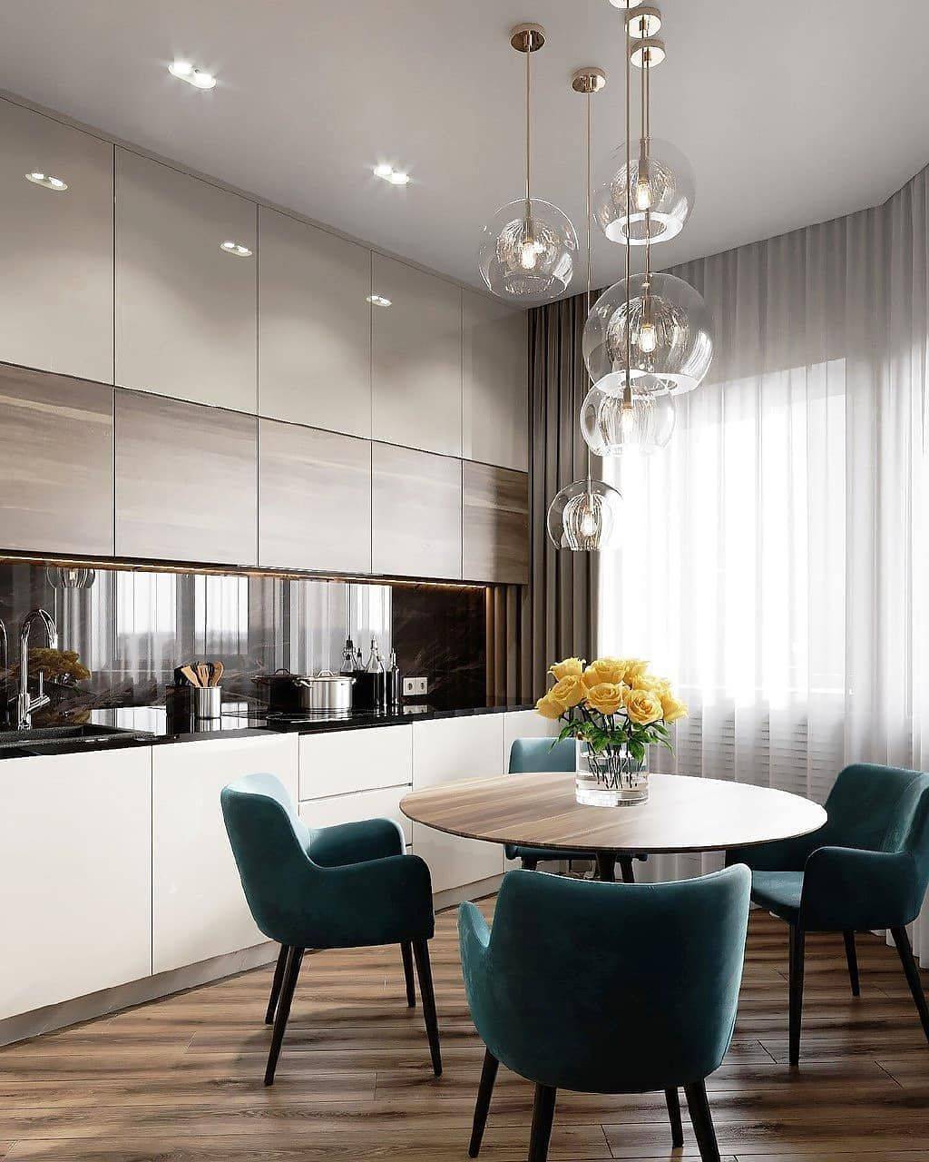 Люди, которые выбирают современную кухню в стиле 2020 года, должны попрощаться с хранением предметов или продуктов на кухонных столешницах. Почему? Чтобы добиться эффекта порядка и изящного минимализма на открытых пространствах, необходимо избавить расположение от ненужных дополнений или украшений.