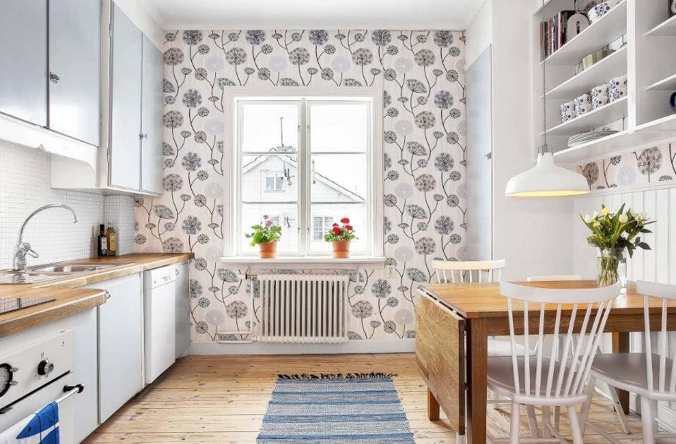 Сегодня на рынке очень много вариантов, вы можете купить самоклеющиеся обои, которые очень легко наклеиваются, как обычные наклейки, и поэтому их также легко снимать. Этот вариант, конечно, не для всех, но он, безусловно, позволяет проявить свою индивидуальность и по желанию позавтракать в зарослях джунглей или на берегу водоема у скалистых гор.