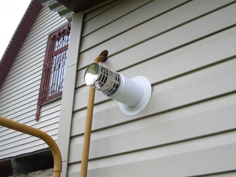 Для монтажа внешней системы достаточно сделать одно отверстие в стене и обеспечить вертикальное расположение труб с помощью кронштейнов. Вывод труб наружу уменьшает риск отравиться отходами горения. Минус – обустройство дополнительной защиты от воздействия внешней среды.