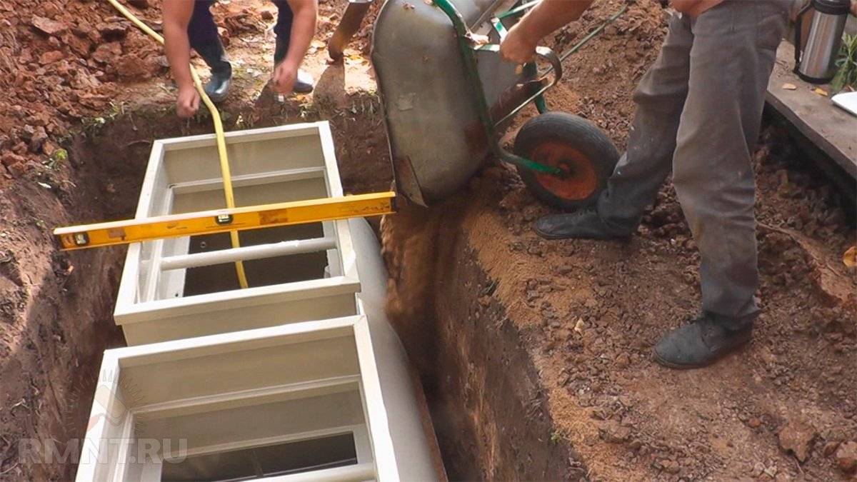 - Сложный монтаж. При установке конструкции из-за накопления воды усложняется процесс рытья котлована и заливки бетонной подушки. Установка готовых очистителей становится более трудоемкой.