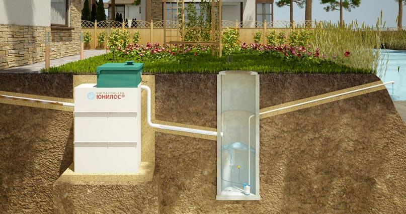 Такая очистная система подойдет для участков, где уровень грунтовых вод не превышает трехметровую отметку от поверхности.