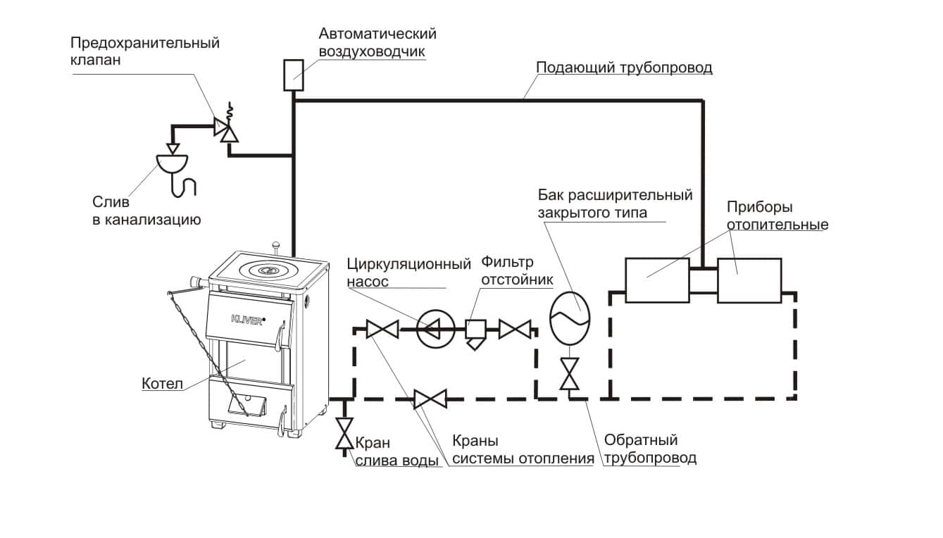 Итак, оборудование установлено, трубы проведены. Можно производить заполнение водой закрытой системы отопления.