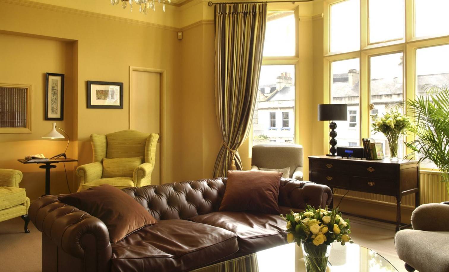 В большой прихожей можно поставить мягкие кресла и кожаный диван для отдыха