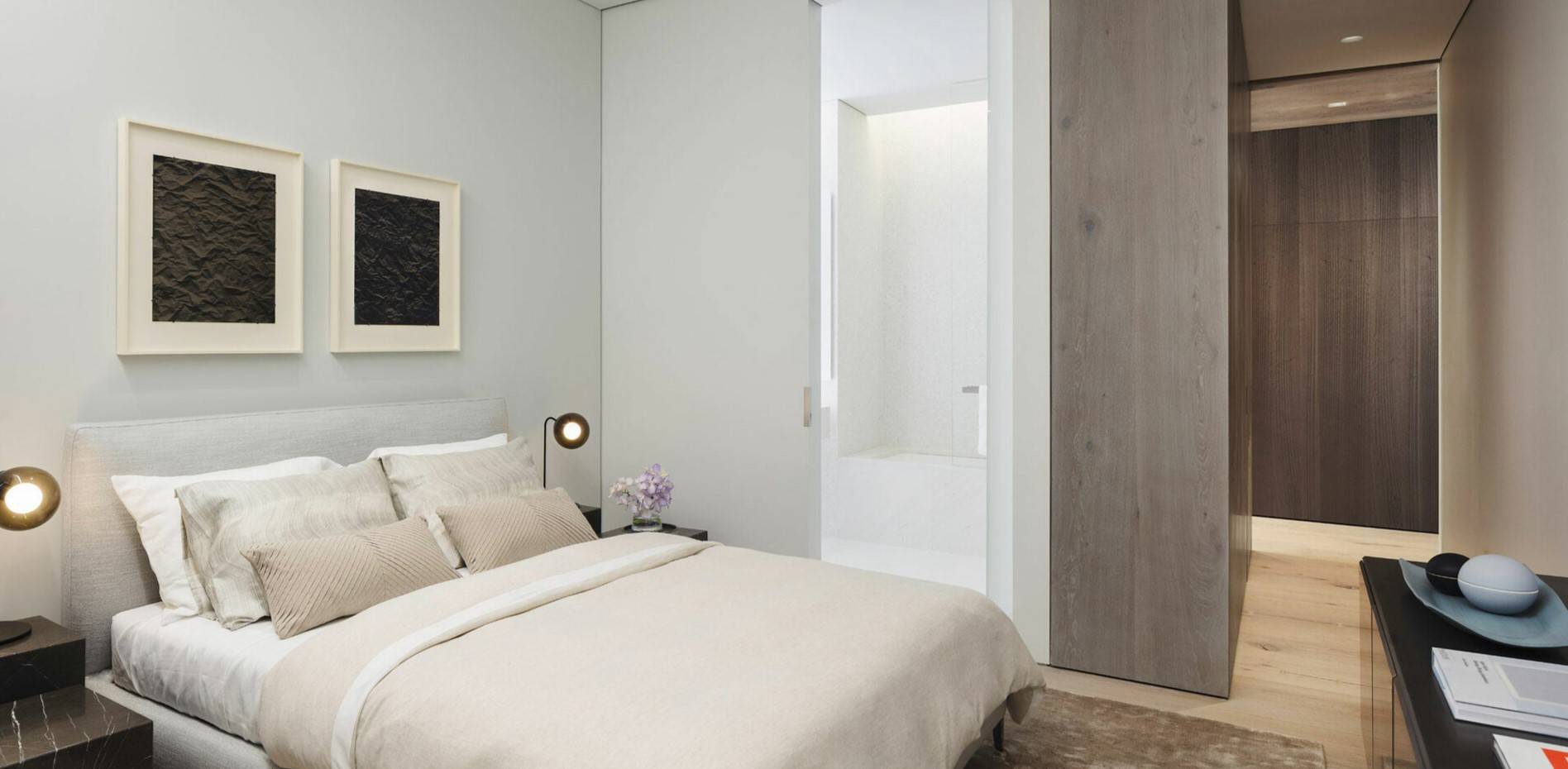 Интерьер современной прихожей, совещенной со спальней