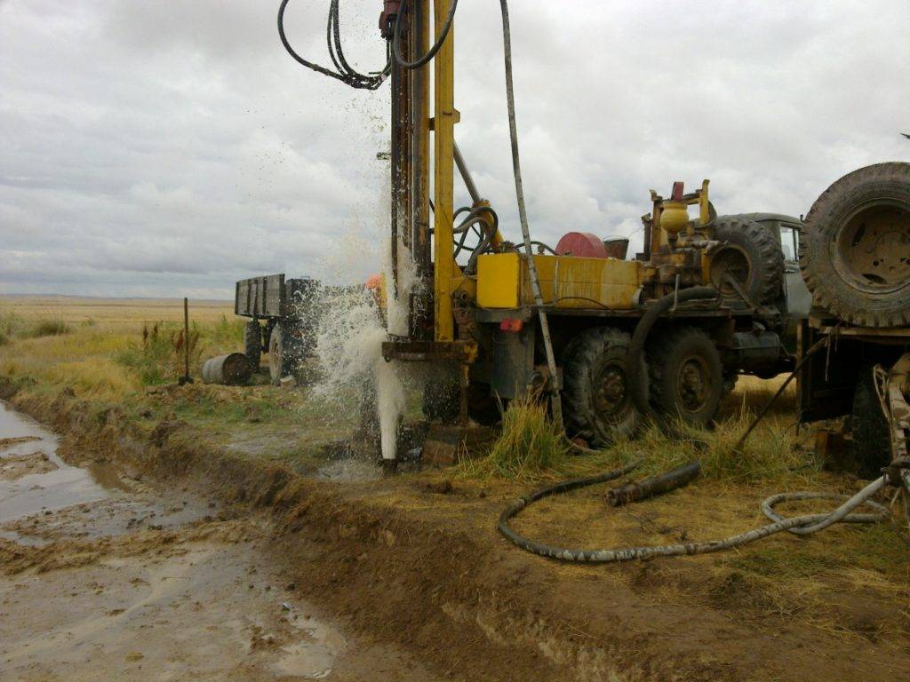 По большому счету, подобный тип бурения скважин очень схож с канатно-вращательным. Разница состоит только в забурниках. Земля размывается под воздействием большого напора воды. Он идеально подходит для рыхлой земли, суспеси и песка. Однако он обладает некоторыми недостатками, один из них – он не может справиться с прослойкой юрской глины. Когда он попадает на плывун, поглощается много воды, а песок, который выпадает в осадок, замедляет процесс бурения.