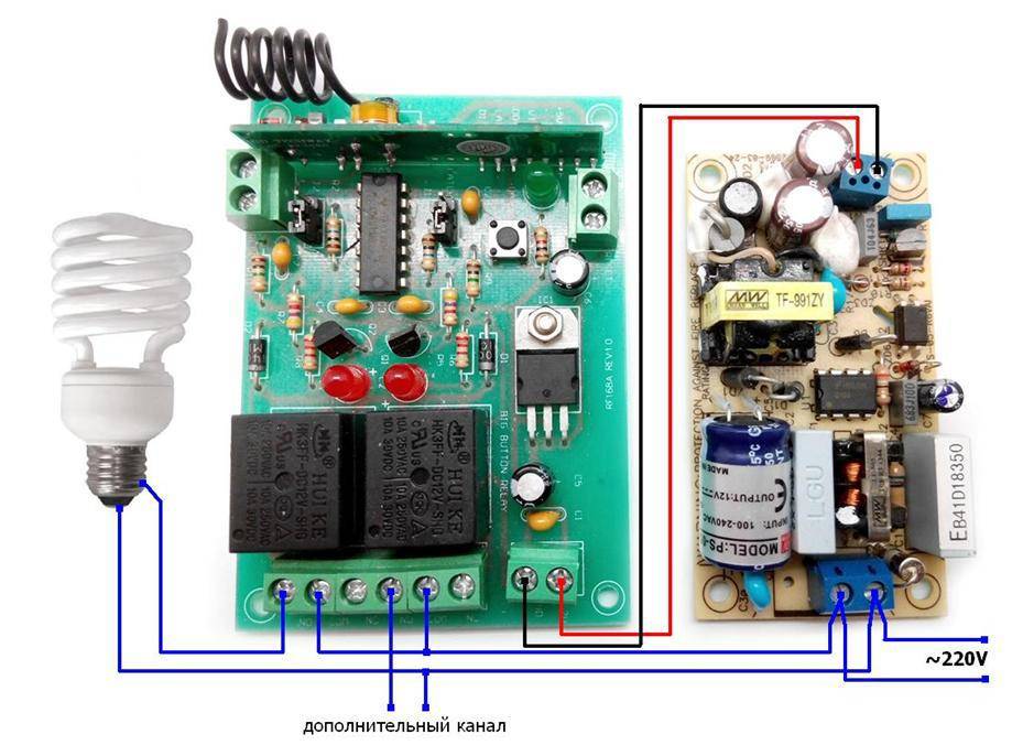 - приемника, который крепится как можно ближе к объекту включения/выключения или внутрь его, если позволяет конструкция;