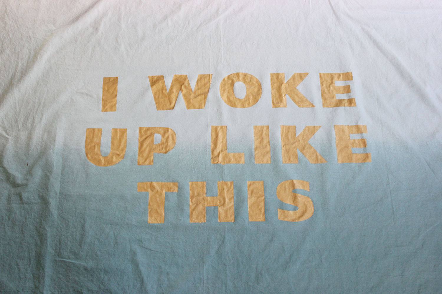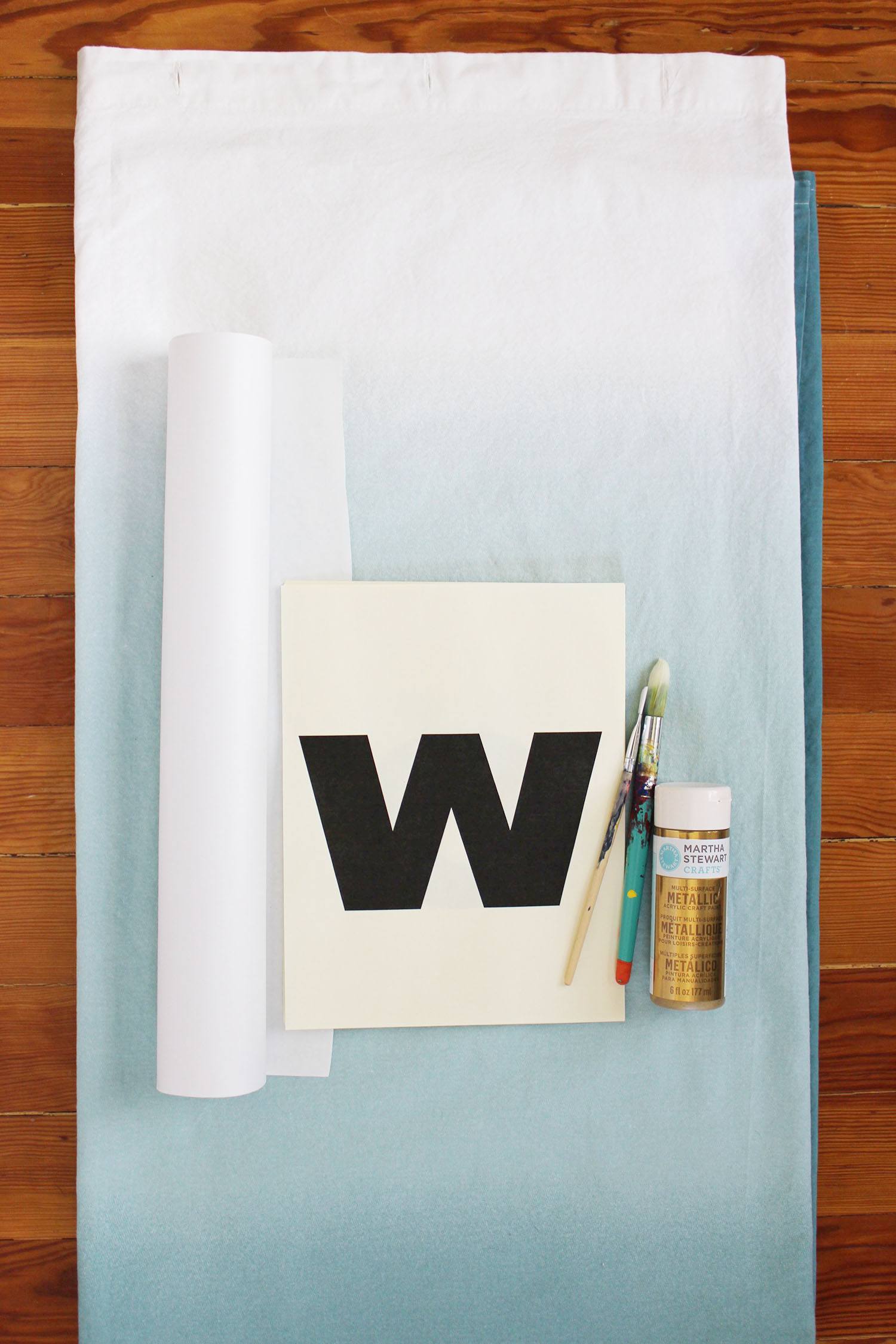 Зарисовываем буквы любым оттенком акриловой краски. Оставляем шторку до полного высыхания.