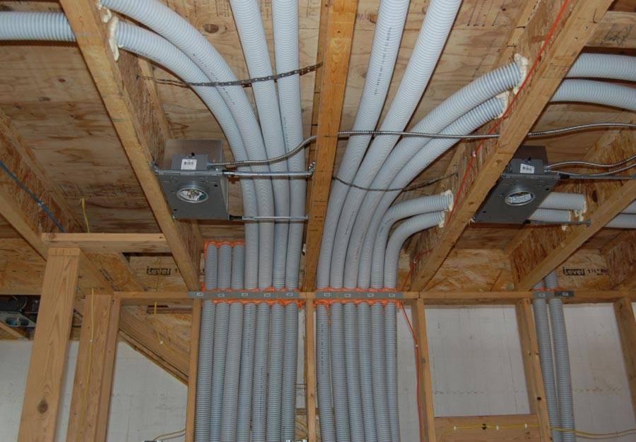 - Плюсом является удобство прокладки коммуникаций внутри каркаса. Благодаря этому можно без огромных временных и трудовых затрат сделать подводку электричества, провести трубы водоснабжения и отопления.
