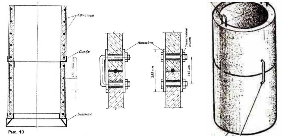 Бетонные кольца можно соединить между собой металлическими скобами и прямыми или изогнутыми пластинами из толстой стальной полосы