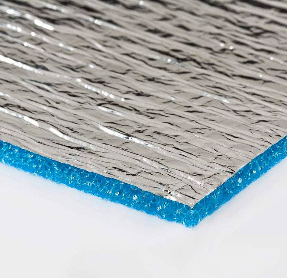 При использовании фольгированной изоляции в качестве единственного утеплителя применяют разновидность с наибольшей толщиной. При этом фольгированный слой должен быть с двух сторон. Если за перекрытием находится неотапливаемый чердак, то утеплитель из вспененного полиэтилена используют только в комплексе с другим надежным теплоизолятором.