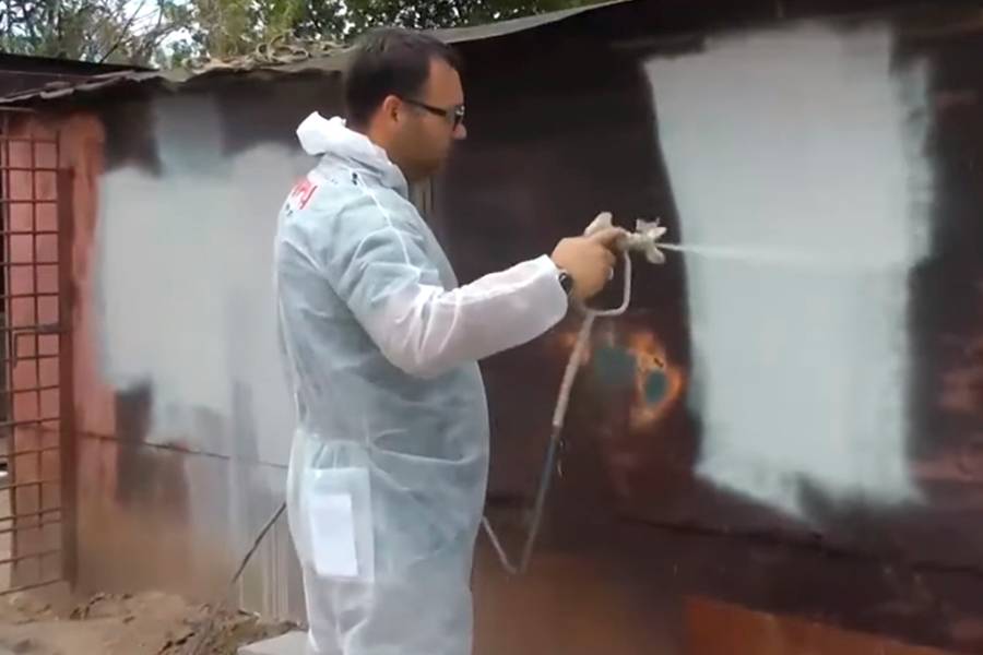 Чтобы наносить термокраску, необходимо запастись соответствующими малярными инструментами. Это может быть краскопульт, валик либо кисть. Лучше всего выходит наносить краску с помощью первого варианта, так как он не только уменьшает расход вещества, но и делает покрытие более качественным.