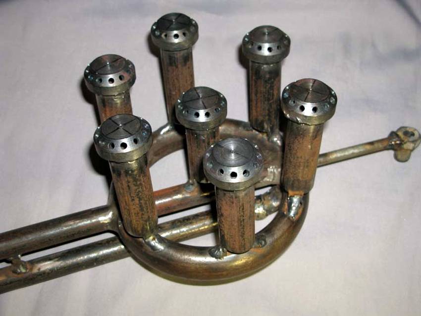 Так выглядит почищенная основная горелка. | Очистка основной горелки. Основные горелки практически не загрязняются, для очистки используйте ткань, при более сильных загрязнениях – металлические щетки. Очистите внешние и внутренние поверхности горелок, проследите, чтобы все отверстия имели должный вид и не были забиты. |