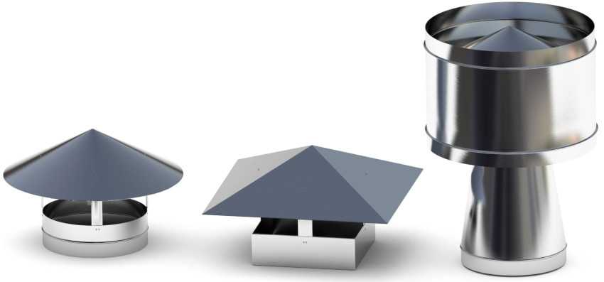 На верхней части некоторых видов устанавливаются железные зонтики. Такие элементы не улучшают тягу, они предназначены только для защиты от дождя.