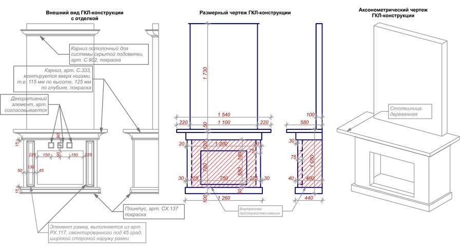 При создании маленького камина можно просто схематически набросать его изображение, но при работе с серьезным изделием, вам потребуется сделать точный рисунок того, каким оно должно получиться, подробный чертеж, в идеале, макет.