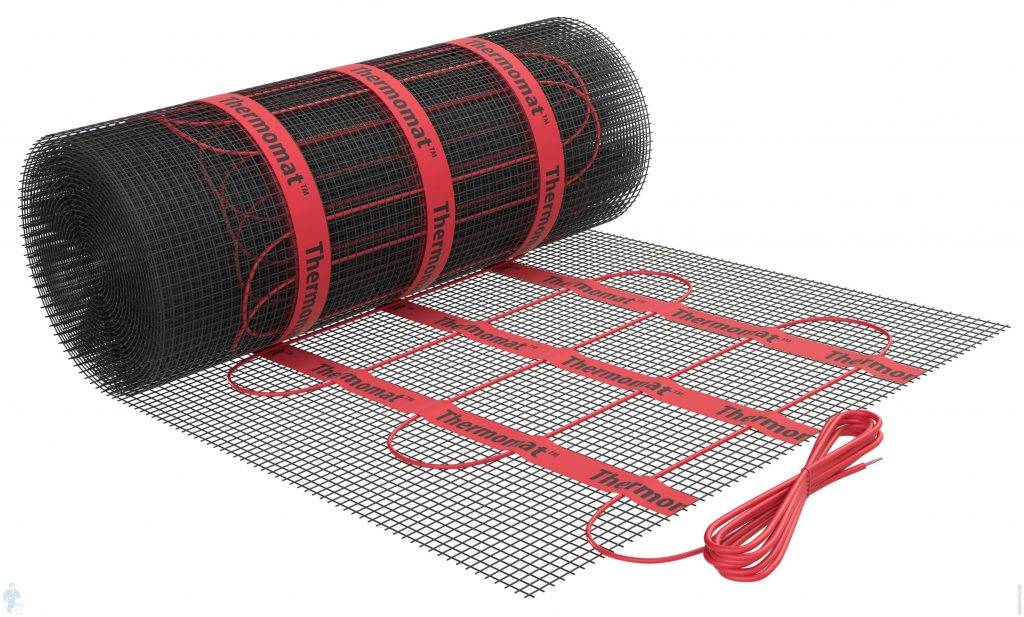 Элементы, отдающие тепловую энергию, формируются в маты. Ламинат под теплый пол использовать допускается по причинам тонкости кабеля и отсутствия расчетных работ. Обогрев также укладывается на стяжку толщиной от 5 до 10 мм.