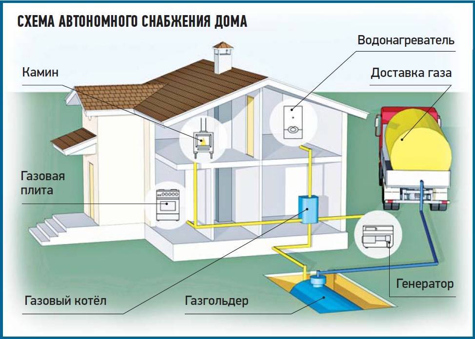 Функционально газохранилища состоят из резервуара, сервисного оборудования, устройств подготовки газовой смеси и средств доставки газа в дом.