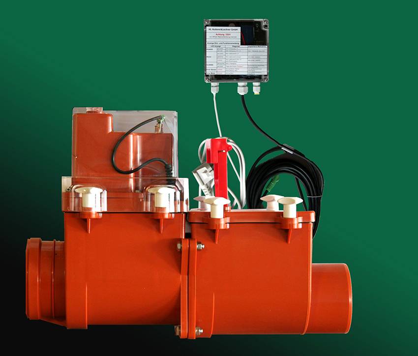 В момент обратного хода сточных вод, благодаря встроенному в обратный клапан зонду, по достижении 70% наполняемости трубопровода срабатывает сигнализация. В это время включаются световое и звуковое сопровождения, предупреждающие о засоре канализационной системы. Одновременно с этим заслонка клапана герметично закрывается, обеспечивая высокую надежность.