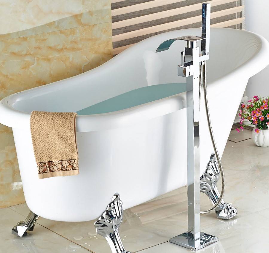 В продаже встречаются смесители интересного дизайна, например, напольные модели. Высота размещения такого смесителя зависит от размеров стойки, входящей в комплектацию прибора