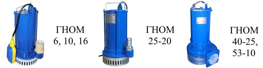 Условно все дренажные насосы серии ГНОМ можно разделить на три вида: