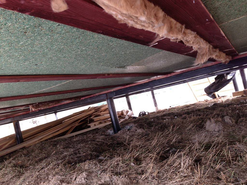 Как вы уже поняли, пол каркасного дома можно также утеплять как сверху (находясь на этаже), так и снизу (из-под дома). Давайте рассмотрим все возможные варианты и потенциальные проблемы.