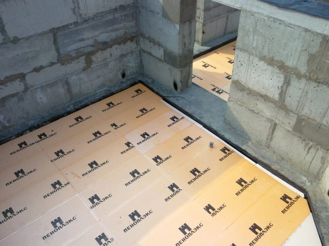 Если полы бетонные, то порядок работ начинается с отсыпки керамзита. В итоге будет двойной слой из бетона с утеплителем между ними.