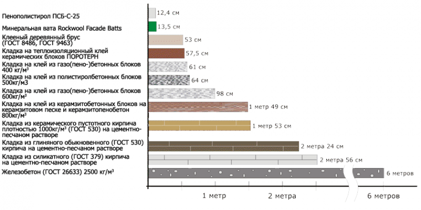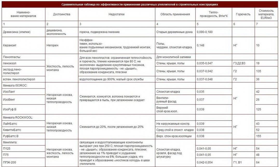Таблица эффективности применения утеплителей