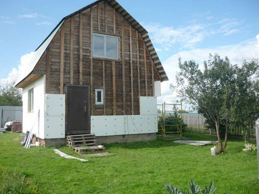 Поверх утепляющего слоя монтируется обрешетка. Возможен вариант с отделкой сайдингом. Между облицовочным и защитным слоями оставляется небольшой зазор, а около фундамента и карниза оставляются отверстия для тока воздуха – продухи.