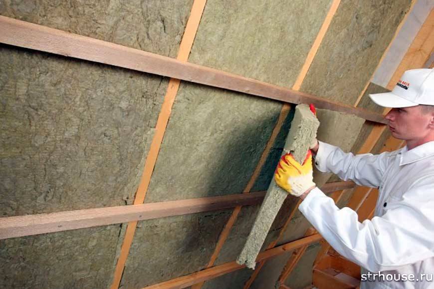 1. При укладке стекловаты малой плотности, утеплитель провисает. Проблему решают так: