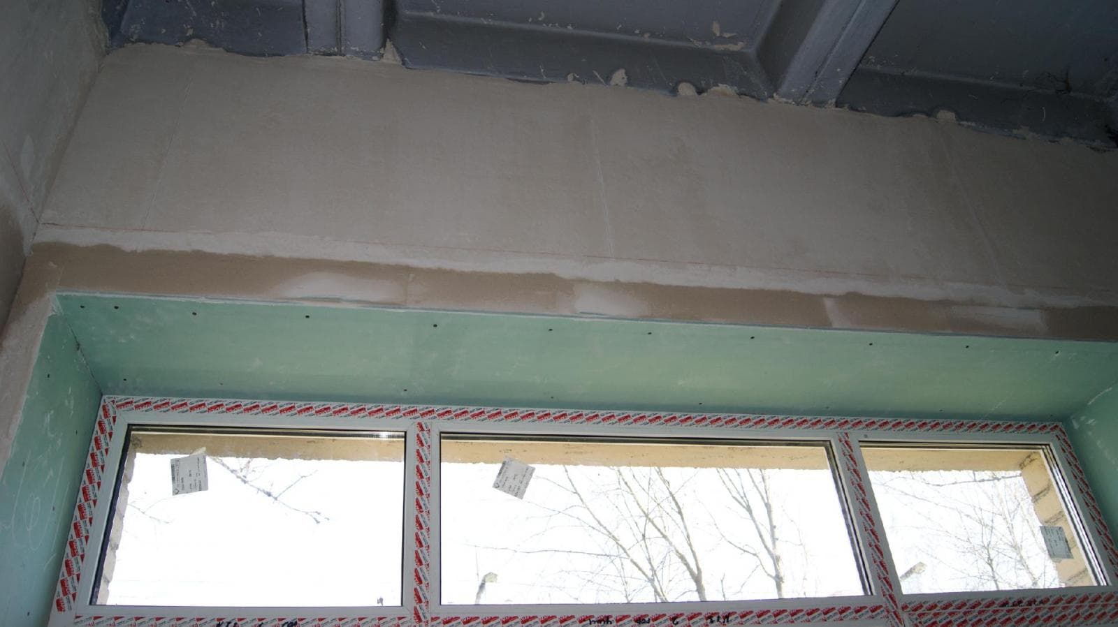 Основной недостаток гипсокартона – способность впитывать влагу, потому при оформлении им внешних откосов, поверхность дополнительно шпаклюют, окрашивают. Материал рекомендуется для отделки окон, выходящих на застекленные балконы, веранды, лоджии.