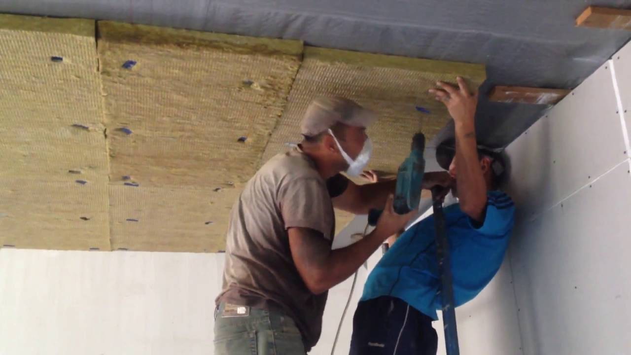 - Утепляющий материал крепится на потолок, стены и пол с помощью дюбелей или клея в соответствии с инструкцией производителя.