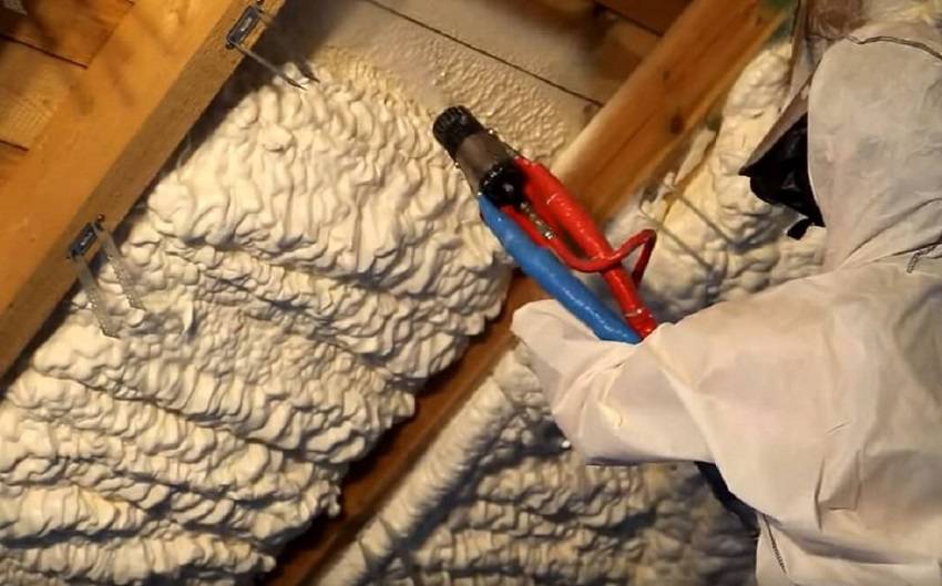 - Профессиональная — требует наличия дорогого оборудования. Такое утепление пенополиуретаном экономически выгодно только для наемных работников, которые имеют большой объем заказов.