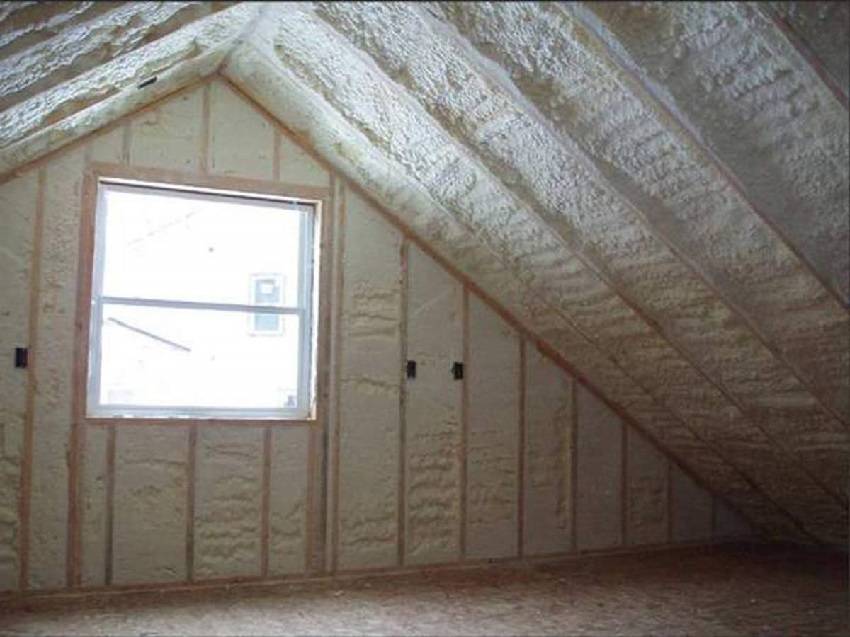 С кровлей вообще проблем нет. Кровельные материалы рассчитаны на многократное промерзание, так что утепление пенополиуретаном кровли можно делать и изнутри, напыляя его непосредственно на «изнанку» кровельного материала или на обрешетку.