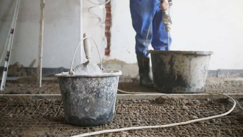 - заливается бетон поверх готового «пирога». Стяжка готова.