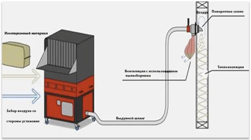 Как уже говорилось выше, укладка эковаты промышленным способом требует использования специального оборудования, которое будет подавать материал на поверхность под давлением.