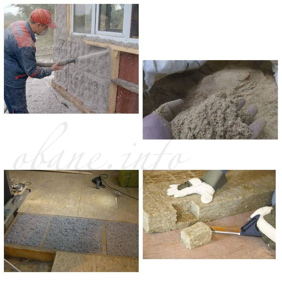 - Утеплитель из опилочно-гипсовой смеси. Для его изготовления нужно смешать 10 частей высушенных мелких опилок с 1 частью цемента (гипса). Утепление каркасной бани изнутри с использованием этой смеси имеет значительное преимущество – доступная стоимость и отличная теплоизоляция (прочитайте: “Как и чем утеплить баню внутри – советы от мастера”).