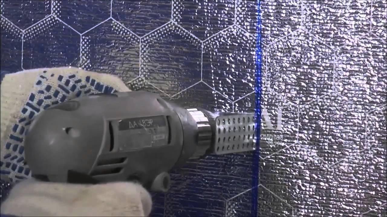 Укладывают изолятор так, чтобы сторона, где располагается алюминий, была повернута в помещение