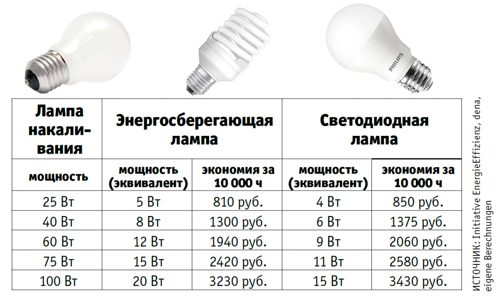 Замена лампы накаливания светодиодной экономит около 4000 рублей за весь срок ее службы, причем светодиодная лампа должна выдержать 10 000 часов работы.