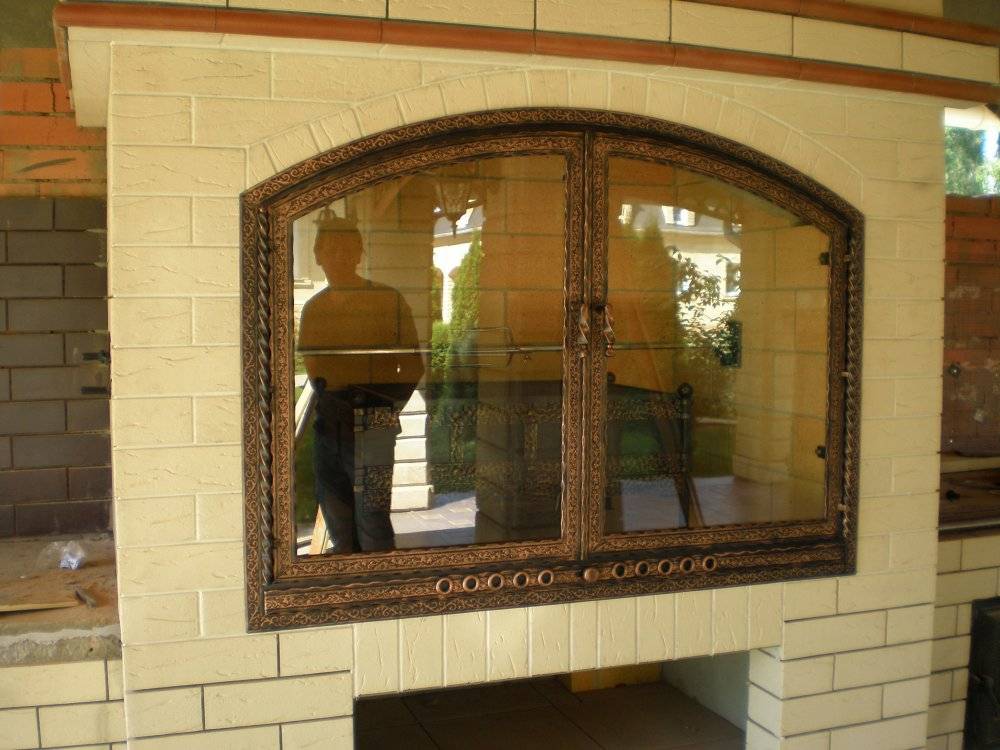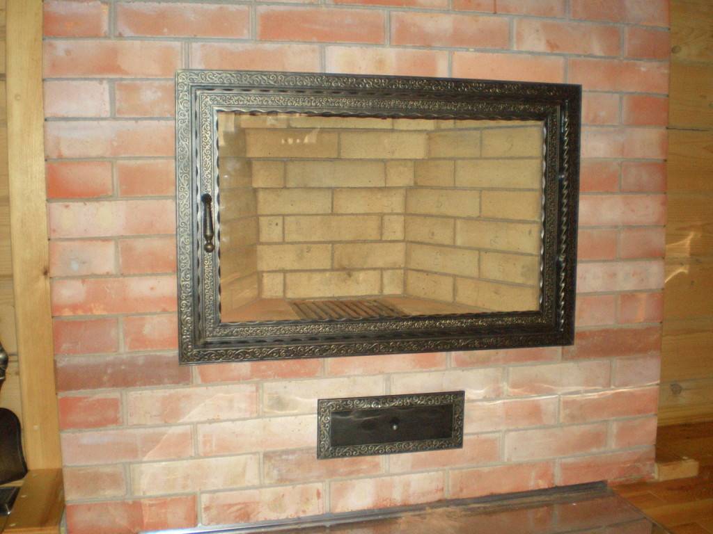 Дверка каминная со стеклом может дополнительно облицовываться и другими огнеупорными материалами, такими как керамическая плитка, изразцы, мозаика, природный и искусственный камень. А основной распашной механизм может быть как вертикальным, так и горизонтальным, откидным.