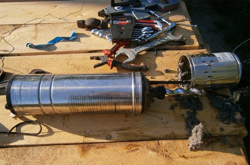 - Через определенное время насос нужно вынуть из скважины и тщательно промыть в емкости с чистой водой.