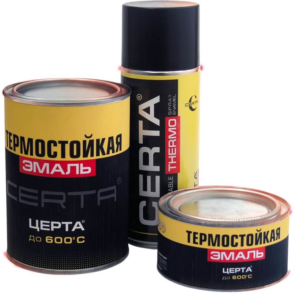 На банках должна быть указана вся информация о предназначении термокраски, до какого значения градусов она может использоваться. ЭтЭто значительно облегчает выбор, так как одного названия простому человеку бывает недостаточно. Для каждой работы или объекта можно подобрать свою термокраску. Например, покрасить радиаторы отопления можно материалом выдерживающим температуру до +160 градусов, а вот поверхность печи потребует стойкости до +600, а то и +800 Со.